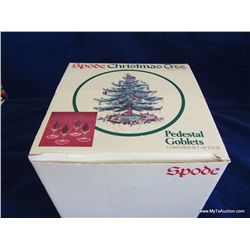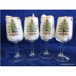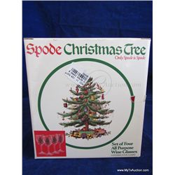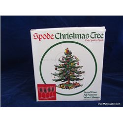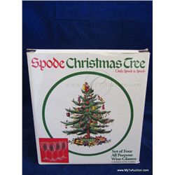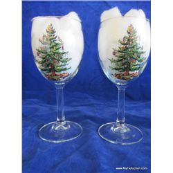 Small wine glass with the Cuthbertson sailboat Christmas tree design. Stands