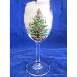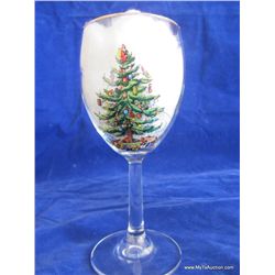 Large beautiful wine glass with the Cuthbertson sailboat Christmas tree design.