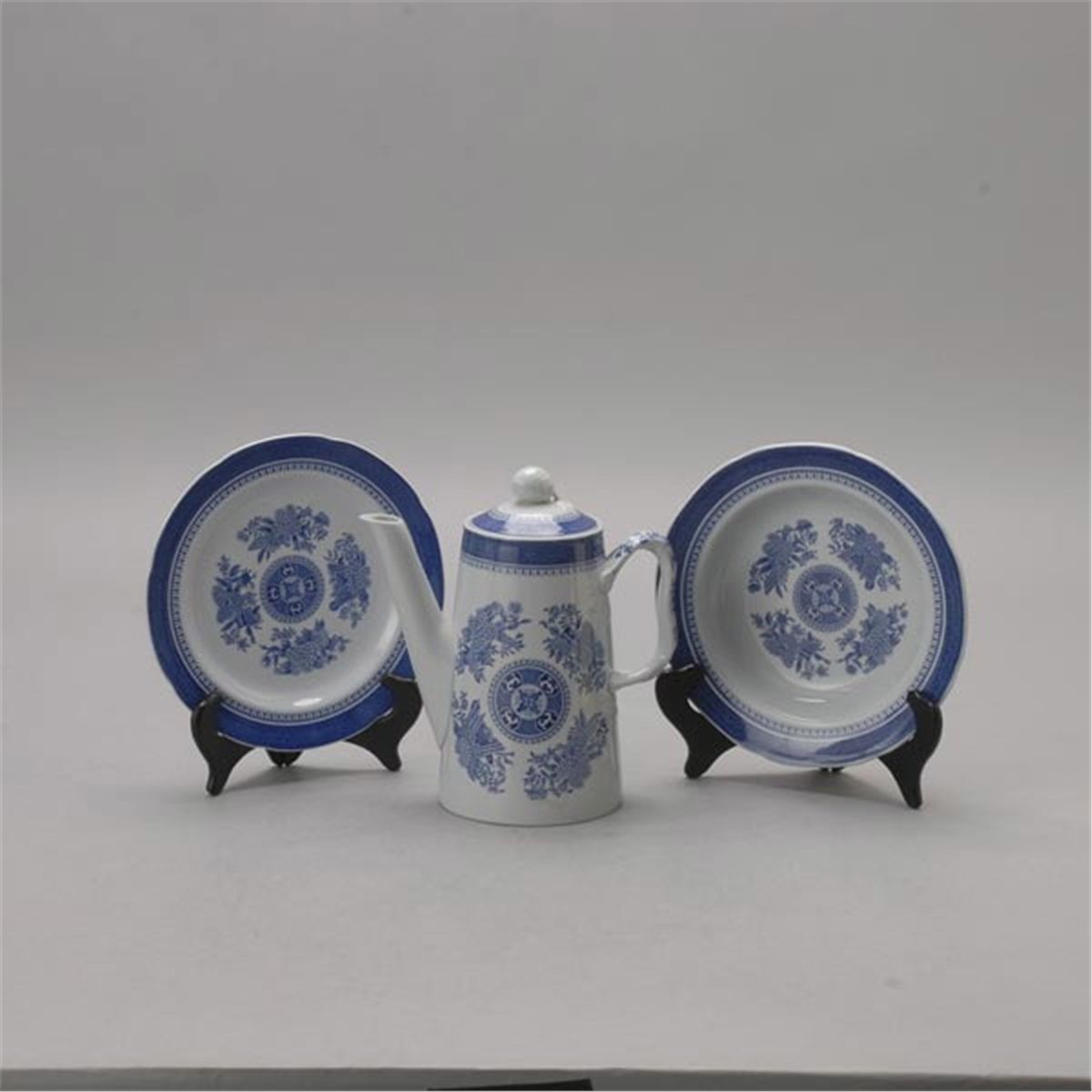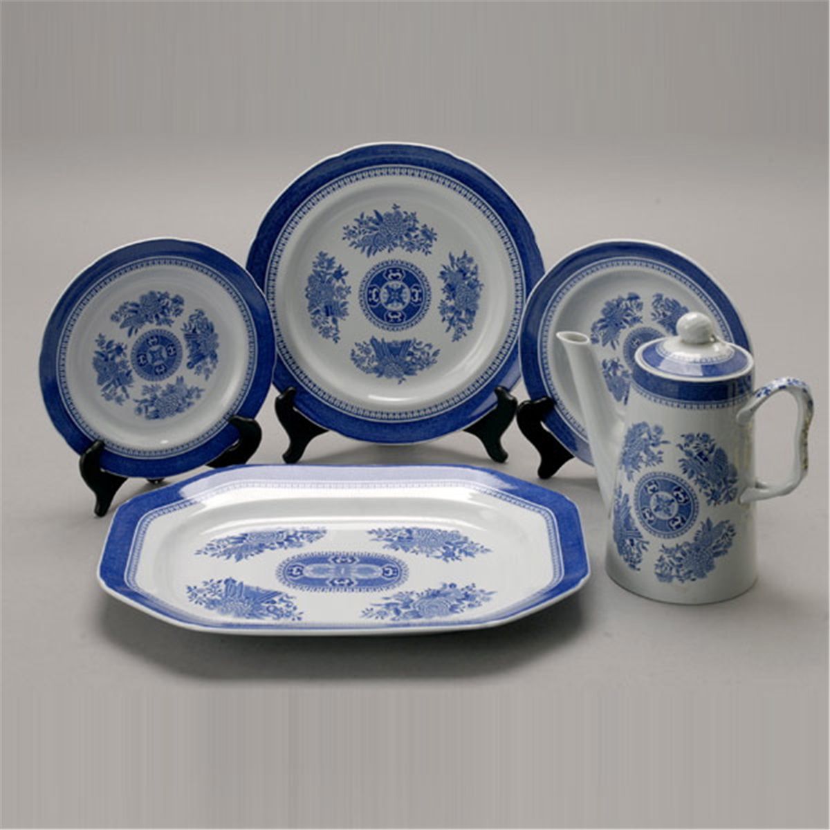 Spode England Partial Dinner Service in the Fitzhugh Pattern: fourteen dinner plates (diameter 10 1/8 inches); twelve lunch plates (diameter 7 7/8 inches); twelve soup bowls (diameter 8 inches); a coffee pot (height 8 1/2 inches); and a platter (length 14 1/4 inches) (40)