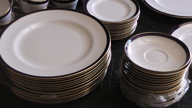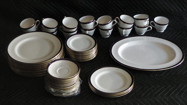 Consul Cobalt. 1 serving platter, 14 dinner plates, 4 salad plates, 14 dessert plates, 16 saucers, 15 tea cups