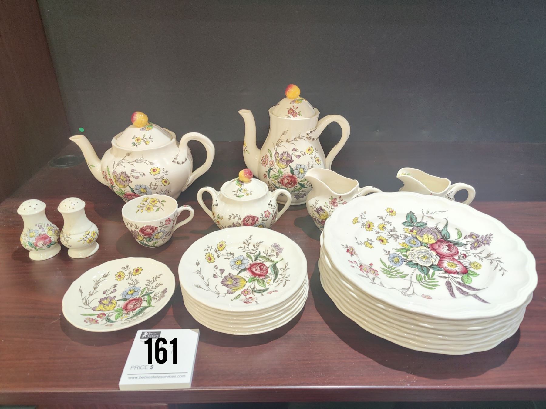 Serving dishware, plates, saucers, teapot, coffee pot, cups & more
