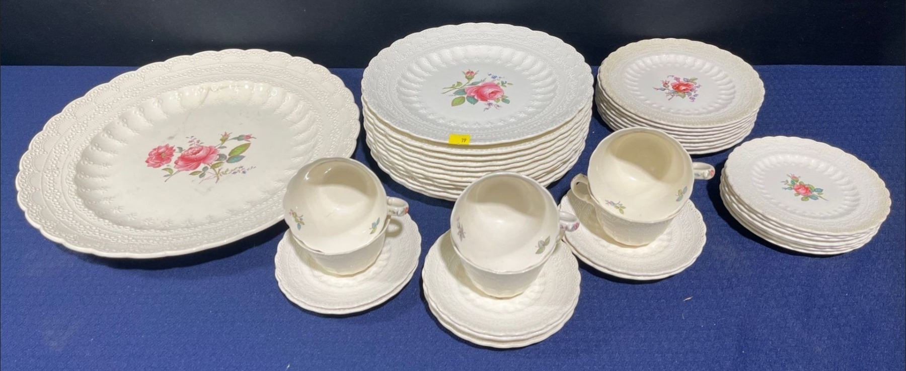 12 Dinner Plates, 8 Salad Plates, 7 Bread Plates, 6 Teacups, 8 Saucers