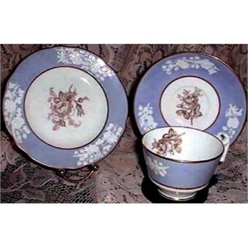 Spode Maritime Rose variation in the high relief Pate Sur Pate design style and a gold transfer-painted rose medallion in lieu of the red rose. Pate Sur Pate heavy slip border detail on grey toned blue ground.<BR><BR>Trio consists of 2.75 inch high cup, 5.25 inch saucer and 6 inch tea plate and are all in pristine condition. Black Spode Copeland England backstamp. Circa 1930 - 1940.<BR><BR>Pate Sur Pate, literally ‘paste on paste’ is the building up of a picture or design on a piece of porcelain by the careful application of layers of hand painted slip (liquid porcelain clay the consistency of thick cream) - possibly the most skillful, time consuming and costly of all ceramic decoration processes. A thin layer of white, or light coloured, porcelain slip applied to a darker unfired ground layer will achieve a degree of translucency when the piece goes through the firing kiln.<BR><BR>Successive layers applied prior to the firing will retain that translucency to a lesser degree until finally, when enough layers have been applied, the translucency will be all but lost. A skillful artist, and there were never that many of them, can manipulate the layers to produce a unique work of art of incredible beauty. Pate sur Pate requires the skill of an artist.<BR><BR>A lovely gift or addition to your private collection.