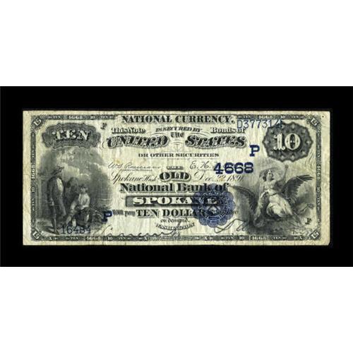 <B>Spokane, WA</B></I> - $10 1882 Date Back Fr. 540 <B>The Old NB</B></I> Ch. # (P)4668<BR> Fewer than thirty Date Backs are known from the entire state of Washington. This is a well margined and original example. Some pinholes are noted on this otherwise problem free Date Back. <B>Fine.</B></I><BR><BR><b>Shipping:</b> Coins & Currency (<a target="_blank" href="http://www.heritageauctions.com/common/shipping.php">view shipping information</a>)