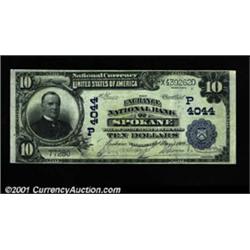 Spokane, WA- $10 1902 Plain Back Fr.<p>626 The Exchange NB Ch. # (P)4044Similar in grade to the note above, and from the same source. Bright Extremely Fine. Important notice: We expect to be auctioning lots at the rate of 200-250 per hour. Sometimes eBay Premier live bid software cannot keep up with that pace, so we strongly recommend that you place a realistic proxy bid now as insurance to avoid disappointment. Also please note that all Heritage/CAA lots purchased through eBay Premier carry a 20% Buyer's Premium.