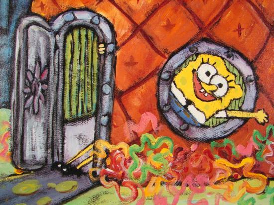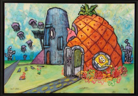 In Waterlogged Cabin, Truth's use of skewed perspective combine with bright colors to portray the magical world of Bikini Bottom - don't miss this unique work of art!!