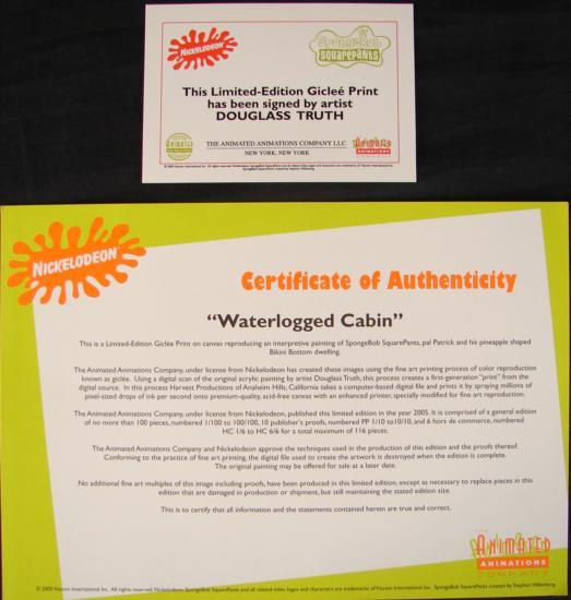 Artist: Douglass Truth Title: Waterlogged Cabin Medium: Giclée Print on Canvas Date of Publication: 2005 Image Size: 18 inches x 26 inches Frame Size: 20 inches x 28 inches Signed, LL Corner Numbered from an edition of 100 Excellent Condition Comes with a COA from NickelodeonHere's what the Certificate of Authenticity has to say: