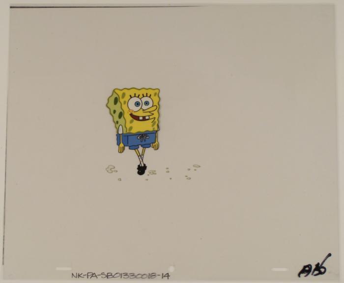 This original animation cel is from the Nickelodeon TV show SpongeBob Squarepants. The story takes place under the deep blue sea in Bikini Bottom, where SpongeBob resides. SpongeBob, who is a yellow, porous sponge, is your typical happy-go-lucky character, as he is always cheerful and enjoys making people laugh. Patrick Star, SpongeBob's Starfish neighbor, boasts knowing nothing and is often getting himself into ridiculous situations. Between the homes of these two lies the home of the miserable Squidward, a squid, who is known for being grouchy and playing tricks on SpongeBob and Patrick. Both SpongeBob and Squidward work at the Krusty Krab, a fast food business run by the greedy money-loving Mr. Krabs, a crab, the arch rival of the evil, possibly misunderstood, Plankton. Another neighbor, Sandy Cheeks, an athletic squirrel who normally wears an astronaut's space suit, was introduced in "Tea at the Treedome." She spends most of her time inventing and experimenting. In this cel SpongeBob is taking a stroll on the beach. Original Production Animated Cel Overall Size of Cel: 10 1/2" x 12 1/2" Excellent Condition; slight outline wearEach one-of-a-kind set-up represents a slight change in position of the characters. When individually photographed and projected in rapid succession, the images appear to move.