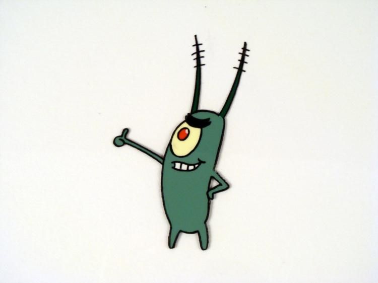 This original animation cel is from the Nickelodeon TV show SpongeBob Squarepants. The story takes place under the deep blue sea in Bikini Bottom, where SpongeBob resides. SpongeBob, who is a yellow, porous sponge, is your typical happy-go-lucky character, * as he is always cheerful and enjoys making people laugh. Patrick Star, SpongeBob's neighbor who is a starfish, is your average children's show idiot, as he boasts knowing nothing and is often getting himself into ridiculous situations. Between the homes of * these two lies the home of the miserable Squidward, a squid, who is known for being grouchy and playing tricks on SpongeBob and Patrick. Both SpongeBob and Squidward work at the Krusty Krab, a fast food business run by the greedy money-loving Mr. Krabs, a * crab, the arch rival of the evil, possibly misunderstood, Plankton. Another neighbor, Sandy Cheeks, an athletic squirrel who normally wears an astronaut's space suit, was introduced in "Tea at the Treedome." She spends most of her time inventing and experimenting. * * Plankton is up to another evil plan * * * * * * Original Production Animated Cel * Overall Size of Cel: 10 1/2" x 12 1/2" * Very Good Condition * This is an original hand-painted cel set-up used in the production of an episode of "SpongeBob SquarePants." Each one-of-a-kind set-up represents a slight change in position of the characters. When individually photographed and projected in rapid succession, * the images appear to move. * * To create production cels, the original animator's drawing is transferred onto an acetate cel (by hand-inking and/or photo copying). The cel is then hand-painted on the reverse side. * * The cel received may be ever so slightly different than the one shown in the auction photo. * * * * The cel is ready to be matted and framed. The animator's notations are at the bottom of the cel. * * * *