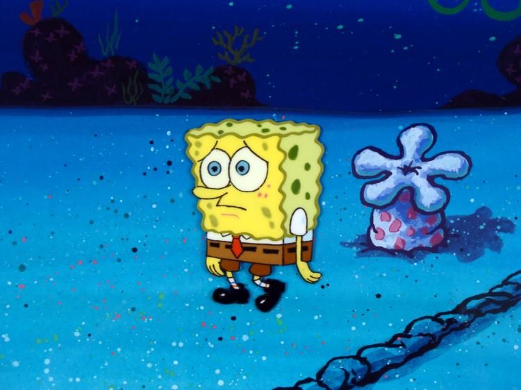}This original hand-painted cel and background is from the Nickelodeon TVs how SpongeBob Squarepants. The story takes place under the deep blue sea in Bikini Bottom, where SpongeBob resides. SpongeBob, who is a yellow, porous sponge, is your typical happy-go-lucky character, as he is always cheerful and enjoys making people laugh. Patrick Star, SpongeBob's neighbor who is a starfish, boasts knowing nothing and is often getting himself into ridiculous situations. Between the homes of these two lies the home of the miserable Squidward, a squid, who is known for being grouchy and playing tricks on SpongeBob and Patrick. Both SpongeBob and Squidward work at the Krusty Krab, a fast food business run by the greedy money-loving Mr. Krabs, a crab, the arch rival of the evil, possibly misunderstood, Plankton. Another neighbor, Sandy Cheeks, an athletic squirrel who normally wears an astronaut's space suit, was introduced in "Tea at the Treedome." She spends most of her time inventing and experimenting. * SpongeBob looks a little nervous, walking alone on this spooky night. * * Original Production Background Overall Size of Background: 10 1/2" x 14" Overall size of cel: 10 1/2" x 12 1/2"Very good conditionOriginal Production Backgrounds are used in the making of the final version of animated productions. The background establishes the location and the overall good mood of the scene. Typically, a background layout artist creates a drawing to establish the content of the scene, placement of characters, perspective and camera angle. Based on this drawing, the background artist creates a preliminary painting to confirm all of the scenes details, then the final production background which is used in the filming of the scene. When these backgrounds are individually photographed behind the progression of production cels, and projected at a rapid succession, the images in the foreground appear to move, creating an animated scene. * This cel was placed with this background because it appears to go well with it. The bottom of the sheet has peg holes, and the animator's notations. *