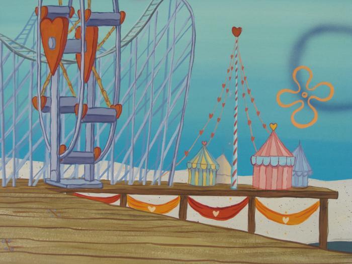 This scene shows a carnival along a pier, kind of a like Bikini Bottom's version of Coney Island.