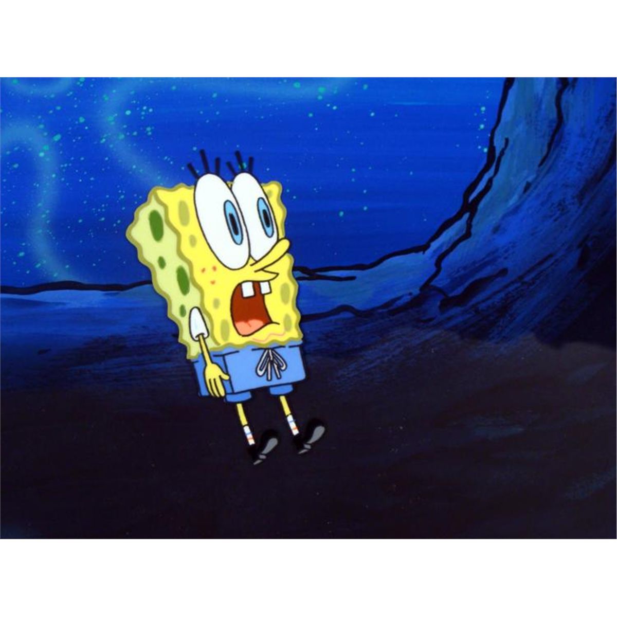 Normal 0 false false false MicrosoftInternetExplorer4 /* Style Definitions */ table.MsoNormalTable{mso-style-name:"Table Normal";mso-tstyle-rowband-size:0;mso-tstyle-colband-size:0;mso-style-noshow:yes;mso-style-parent:"";mso-padding-alt:0in 5.4pt 0in 5.4pt;mso-para-margin:0in;mso-para-margin-bottom:.0001pt;mso-pagination:widow-orphan;font-size:10.0pt;font-family:"Times New Roman";mso-ansi-language:#0400;mso-fareast-language:#0400;mso-bidi-language:#0400;}This original hand-painted cel and background is from the Nickelodeon TVs how SpongeBob Squarepants. The story takes place under the deep blue sea in Bikini Bottom, where SpongeBob resides. SpongeBob, who is a yellow, porous sponge, is your typical happy-go-lucky character, as he is always cheerful and enjoys making people laugh. Patrick Star, SpongeBob's neighbor who is a starfish, boasts knowing nothing and is often getting himself into ridiculous situations. Between the homes of these two lies the home of the miserable Squidward, a squid, who is known for being grouchy and playing tricks on SpongeBob and Patrick. Both SpongeBob and Squidward work at the Krusty Krab, a fast food business run by the greedy money-loving Mr. Krabs, a crab, the arch rival of the evil, possibly misunderstood, Plankton. Another neighbor, Sandy Cheeks, an athletic squirrel who normally wears an astronaut's space suit, was introduced in "Tea at the Treedome." She spends most of her time inventing and experimenting. * SpongeBob thinks he sees something in the dark, and is scared half out of his wits! * * Overall Size of Background: 10 1/2" x 14" Overall size of cel: 10 1/2" x 12 1/2"Very good conditionOriginal Production Backgrounds are used in the making of the final version of animated productions. The background establishes the location and the overall good mood of the scene. Typically, a background layout artist creates a drawing to establish the content of the scene, placement of characters, perspective and camera angle. Based on this drawing, the background artist creates a preliminary painting to confirm all of the scenes details, then the final production background which is used in the filming of the scene. When these backgrounds are individually photographed behind the progression of production cels, and projected at a rapid succession, the images in the foreground appear to move, creating an animated scene. * This cel was placed with this background because it appears to go well with it. The bottom of the sheet has peg holes, and the animator's notations. *