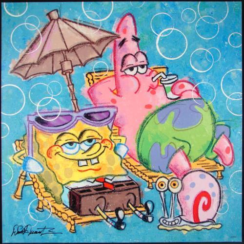 This signed limited edition giclé on canvas print by Dick Duerrstein shows us SpongeBob SquarePants and his buddy Patrick enjoying a break under the beach!