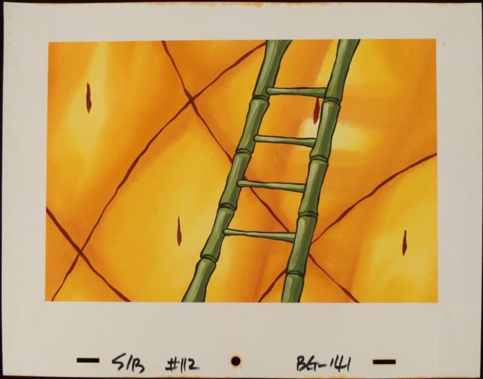 This original hand-painted background from the Nickelodeon TV show SpongeBob Squarepants. The story takes place under the deep blue sea in Bikini Bottom, where SpongeBob resides. SpongeBob, who is a yellow, porous sponge, is your typical happy-go-lucky character, as he is always cheerful and enjoys making people laugh. Patrick Star, SpongeBob's neighbor who is a starfish, is your average children's show idiot, as he boasts knowing nothing and is often getting himself into ridiculous situations. Between the homes of these two lies the home of the miserable Squidward, a squid, who is known for being grouchy and playing tricks on SpongeBob and Patrick. Both SpongeBob and Squidward work at the Krusty Krab, a fast food business run by the greedy money-loving Mr. Krabs, a crab, the arch rival of the evil, possibly misunderstood, Plankton. Another neighbor, Sandy Cheeks, an athletic squirrel who normally wears an astronaut's space suit, was introduced in "Tea at the Treedome." She spends most of her time inventing and experimenting. Who lives in a Pineapple under the sea?Original Production Background Overall Size of Background: 10" x 13" Very good conditionOriginal Production Backgrounds are used in the making of the final version of animated productions. The background establishes the location and the overall good mood of the scenee. Typically, a background layout artist creates a drawing to establish the content of the scene, placement of characters, perspective and camera angle. Based on this drawing, the background artist creates a preliminary painting to confirm all of the scenes details, then the final production background which is used in the filming of the scene. When these backgrounds are individually photographed behind the progression of production cels, and projected at a rapid succession, the images in the foreground appear to move, creating an animated scene. The background is ready to be matted and framed. It is a colored background with the animator's notations at the bottom.