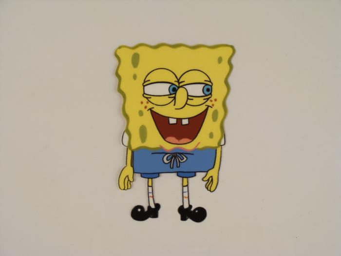 This original animation cel is from the Nickelodeon TV show SpongeBob Squarepants. The story takes place under the deep blue sea in Bikini Bottom, where SpongeBob resides. SpongeBob, who is a yellow, porous sponge, is your typical happy-go-lucky character, as he is always cheerful and enjoys making people laugh. Patrick Star, SpongeBob's Starfish neighbor, boasts knowing nothing and is often getting himself into ridiculous situations. Between the homes of these two lies the home of the miserable Squidward, a squid, who is known for being grouchy and playing tricks on SpongeBob and Patrick. Both SpongeBob and Squidward work at the Krusty Krab, a fast food business run by the greedy money-loving Mr. Krabs, a crab, the arch rival of the evil, possibly misunderstood, Plankton. Another neighbor, Sandy Cheeks, an athletic squirrel who normally wears an astronaut's space suit, was introduced in "Tea at the Treedome." She spends most of her time inventing and experimenting. In this cel SpongeBob is wearing his swim trunks, ready to hang loose at the beach. Original Production Animated Cel Overall Size of Cel: 10 1/2" x 12 1/2" Excellent ConditionEach one-of-a-kind set-up represents a slight change in position of the characters. When individually photographed and projected in rapid succession, the images appear to move.