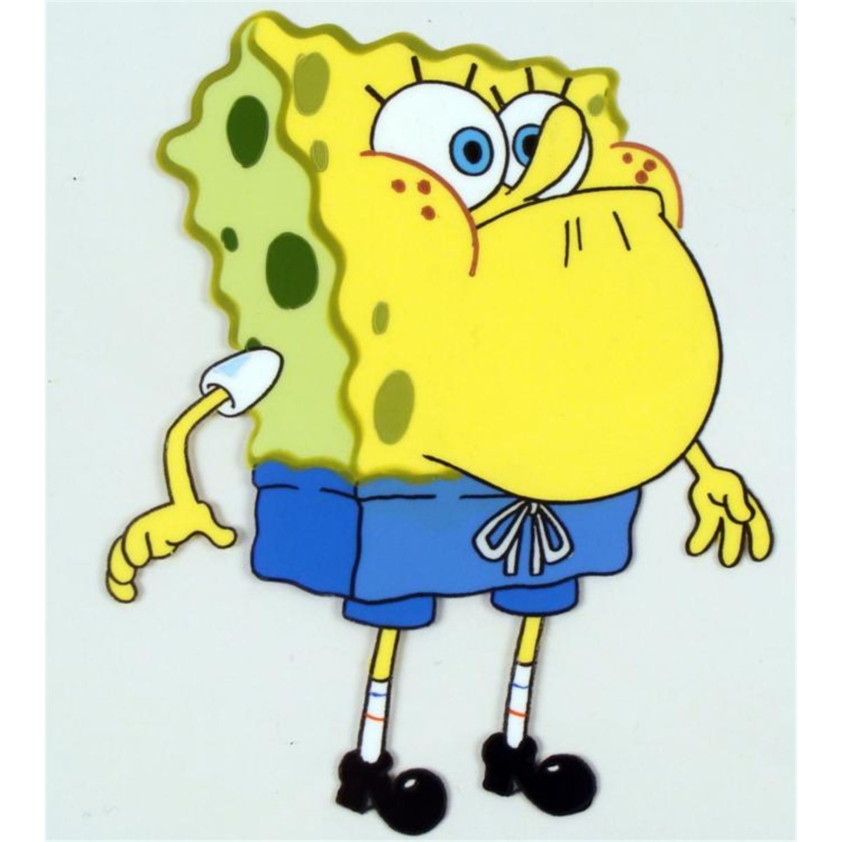 Normal 0 false false false MicrosoftInternetExplorer4 /* Style Definitions */ table.MsoNormalTable{mso-style-name:"Table Normal";mso-tstyle-rowband-size:0;mso-tstyle-colband-size:0;mso-style-noshow:yes;mso-style-parent:"";mso-padding-alt:0in 5.4pt 0in 5.4pt;mso-para-margin:0in;mso-para-margin-bottom:.0001pt;mso-pagination:widow-orphan;font-size:10.0pt;font-family:"Times New Roman";mso-ansi-language:#0400;mso-fareast-language:#0400;mso-bidi-language:#0400;}This original hand-painted animation cel is from the Nickelodeon TVs how SpongeBob Squarepants. The story takes place under the deep blue sea in Bikini Bottom, where SpongeBob resides. SpongeBob, who is a yellow, porous sponge, is your typical happy-go-lucky character, as he is always cheerful and enjoys making people laugh. Patrick Star, SpongeBob's neighbor who is a starfish, boasts knowing nothing and is often getting himself into ridiculous situations. Between the homes of these two lies the home of the miserable Squidward, a squid, who is known for being grouchy and playing tricks on SpongeBob and Patrick. Both SpongeBob and Squidward work at the Krusty Krab, a fast food business run by the greedy money-loving Mr. Krabs, a crab, the arch rival of the evil, possibly misunderstood, Plankton. Another neighbor, Sandy Cheeks, an athletic squirrel who normally wears an astronaut's space suit, was introduced in "Tea at the Treedome." She spends most of her time inventing and experimenting. * SpongeBob is blowing up his face like a frog. * * Original Production Background Overall Size of cel10 1/2" x 12 1/2" Very good conditionEach one-of-a-kind set-up represents a slight change in position of the characters. When individually photographed and projected in rapid succession, the images appear to move. * To create production cels, the original animator's drawing is transferred onto an acetate cel (by hand-inking and/or photo copying). The cel is then hand-painted on the reverse side. * The bottom of the sheet has peg holes, and the animator's notations. *