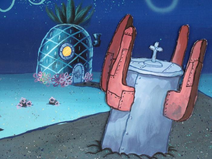 This original hand-painted background and animation cel are from the Nickelodeon TV show SpongeBob Squarepants. The story takes place under the deep blue sea in Bikini Bottom, where SpongeBob resides. SpongeBob, who is a yellow, porous sponge, is your typical happy-go-lucky character, as he is always cheerful and enjoys making people laugh. Patrick Star, SpongeBob's neighbor who is a starfish, is your average children's show idiot, as he boasts knowing nothing and is often getting himself into ridiculous situations. Between the homes of these two lies the home of the miserable Squidward, a squid, who is known for being grouchy and playing tricks on SpongeBob and Patrick. Both SpongeBob and Squidward work at the Krusty Krab, a fast food business run by the greedy money-loving Mr. Krabs, a crab, the arch rival of the evil, possibly misunderstood, Plankton. Another neighbor, Sandy Cheeks, an athletic squirrel who normally wears an astronaut's space suit, was introduced in "Tea at the Treedome." She spends most of her time inventing and experimenting. Original Production Background and Animated Cel Overall Size of Background: 10 1/2" x 14" Overall Size of the Cel: 10 1/2" x 12 1/2" Very good condition; it has been stored rolled This is an original hand-painted cel set-up used in the production of an episode of "SpongeBob SquarePants." Each one-of-a-kind set-up represents a slight change in position of the characters. When individually photographed and projected in rapid succession, the images appear to move.