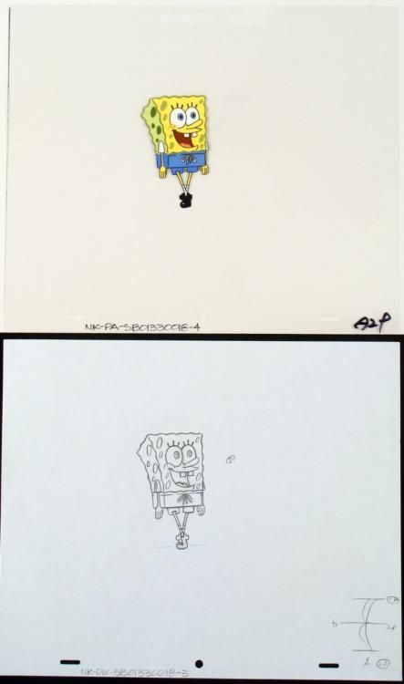 Normal 0 false false false MicrosoftInternetExplorer4 /* Style Definitions */ table.MsoNormalTable{mso-style-name:"Table Normal";mso-tstyle-rowband-size:0;mso-tstyle-colband-size:0;mso-style-noshow:yes;mso-style-parent:"";mso-padding-alt:0in 5.4pt 0in 5.4pt;mso-para-margin:0in;mso-para-margin-bottom:.0001pt;mso-pagination:widow-orphan;font-size:10.0pt;font-family:"Times New Roman";mso-ansi-language:#0400;mso-fareast-language:#0400;mso-bidi-language:#0400;}This original hand-painted animation cel with matching drawing is from the Nickelodeon TVs how SpongeBob Squarepants. The story takes place under the deep blue sea in Bikini Bottom, where SpongeBob resides. SpongeBob, who is a yellow, porous sponge, is your typical happy-go-lucky character, as he is always cheerful and enjoys making people laugh. Patrick Star, SpongeBob's neighbor who is a starfish, boasts knowing nothing and is often getting himself into ridiculous situations. Between the homes of these two lies the home of the miserable Squidward, a squid, who is known for being grouchy and playing tricks on SpongeBob and Patrick. Both SpongeBob and Squidward work at the Krusty Krab, a fast food business run by the greedy money-loving Mr. Krabs, a crab, the arch rival of the evil, possibly misunderstood, Plankton. Another neighbor, Sandy Cheeks, an athletic squirrel who normally wears an astronaut's space suit, was introduced in "Tea at the Treedome." She spends most of her time inventing and experimenting. * SpongeBob is probably just walking here, but it looks like he's doing ballet! * * Original Production Background Overall Size of cel and drawing: 10 1/2" x 12 1/2" Very good conditionEach one-of-a-kind set-up represents a slight change in position of the characters. When individually photographed and projected in rapid succession, the images appear to move. * To create production cels, the original animator's drawing is transferred onto an acetate cel (by hand-inking and/or photo copying). The cel is then hand-painted on the reverse side. * The bottom of the sheet has peg holes, and the animator's notations. *