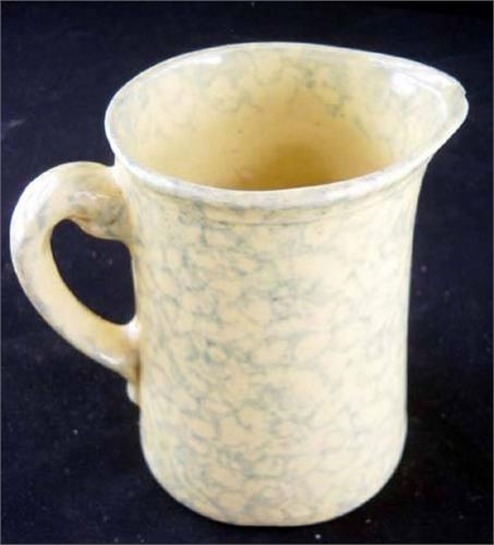 Spongeware Milk Pitcher, chip on lip, 6.5" x 4.5"