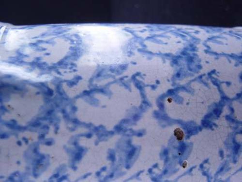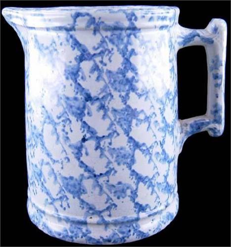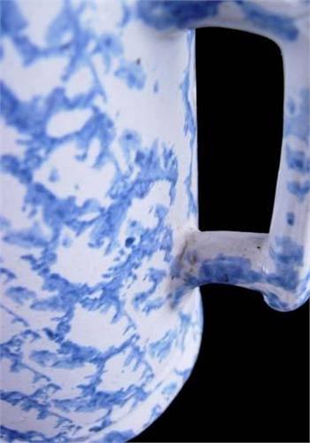 Spongeware Milk Pitcher, repaired handle, some pitting, 7" x 5.5"