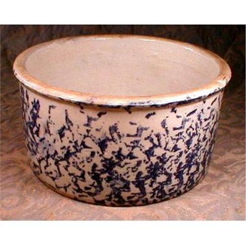 Great looking antique sponge ware pottery butter crock. Cobalt Blue