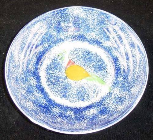 Spongeware Saucer/Bowl, Rare with Pea Fowl stickspat center 1" x 6"