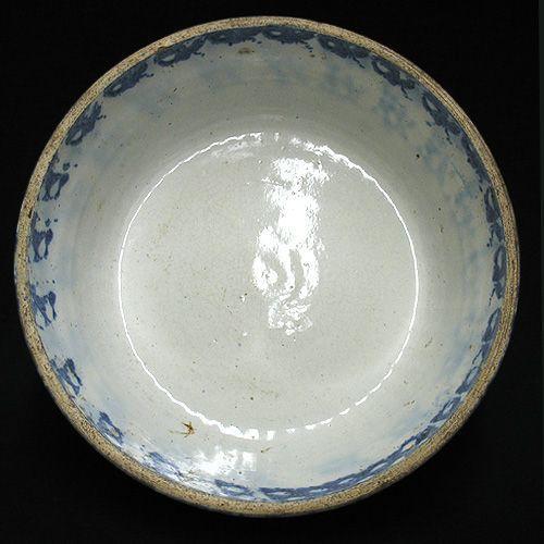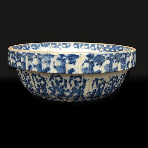 Spongeware mixing bowl with large mottle decoration; 4 inches high x 10 inch diameter (no visible defects)