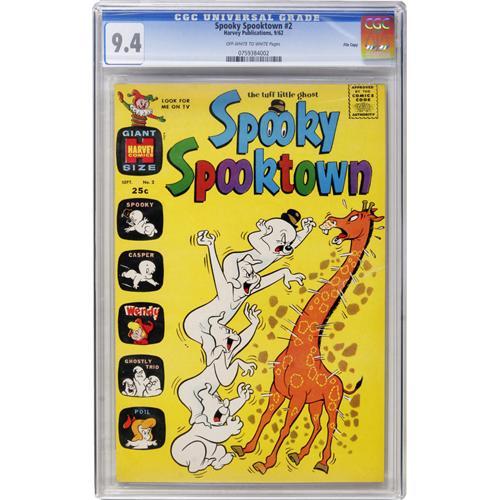 <B>Spooky Spooktown #2 File Copy (Harvey, 1962) CGC NM 9.4 Off-white to white pages.</B></I> More giant-sized fun with derby-wearing Spooky and his ghostly pals, including Casper and Wendy. Beautiful square bound publisher's file copy. Overstreet 2006 NM- 9.2 value = $130. CGC census 3/07: 2 in 9.4, none higher. <I> From the Cary and Cheryl Porter Collection.</B></I><BR><BR><b>Shipping:</b> Comics - Slabbed (certified) (<a target="_blank" href="http://www.heritageauctions.com/common/shipping.php">view shipping information</a>)