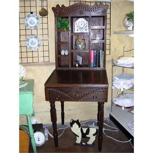 <tr><td>Title:Spoon Carved Bookkeeper Desk Cabinet Cubbyholes</td></tr>