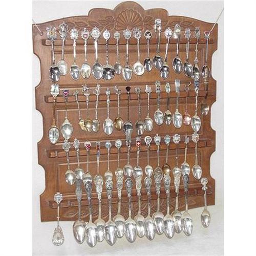 <table width="100%" border="0" cellspacing="0" cellpadding="4"><tr><td><em> </em></td></tr><tr> <td width="100%"> Sixty souvnier spoons from all different countries make up this collection, some are just metal, some are silver plate and some are 800 silver. Many have enameling. The collection is displayed on a wood spoon rack that is included. A great piece of decoration to make your friends think that you are a world traveler even if you have never left home.