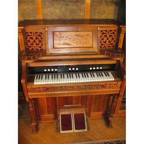 Spoon carved Walnut organ, works, John M. Smully?,minor damage.