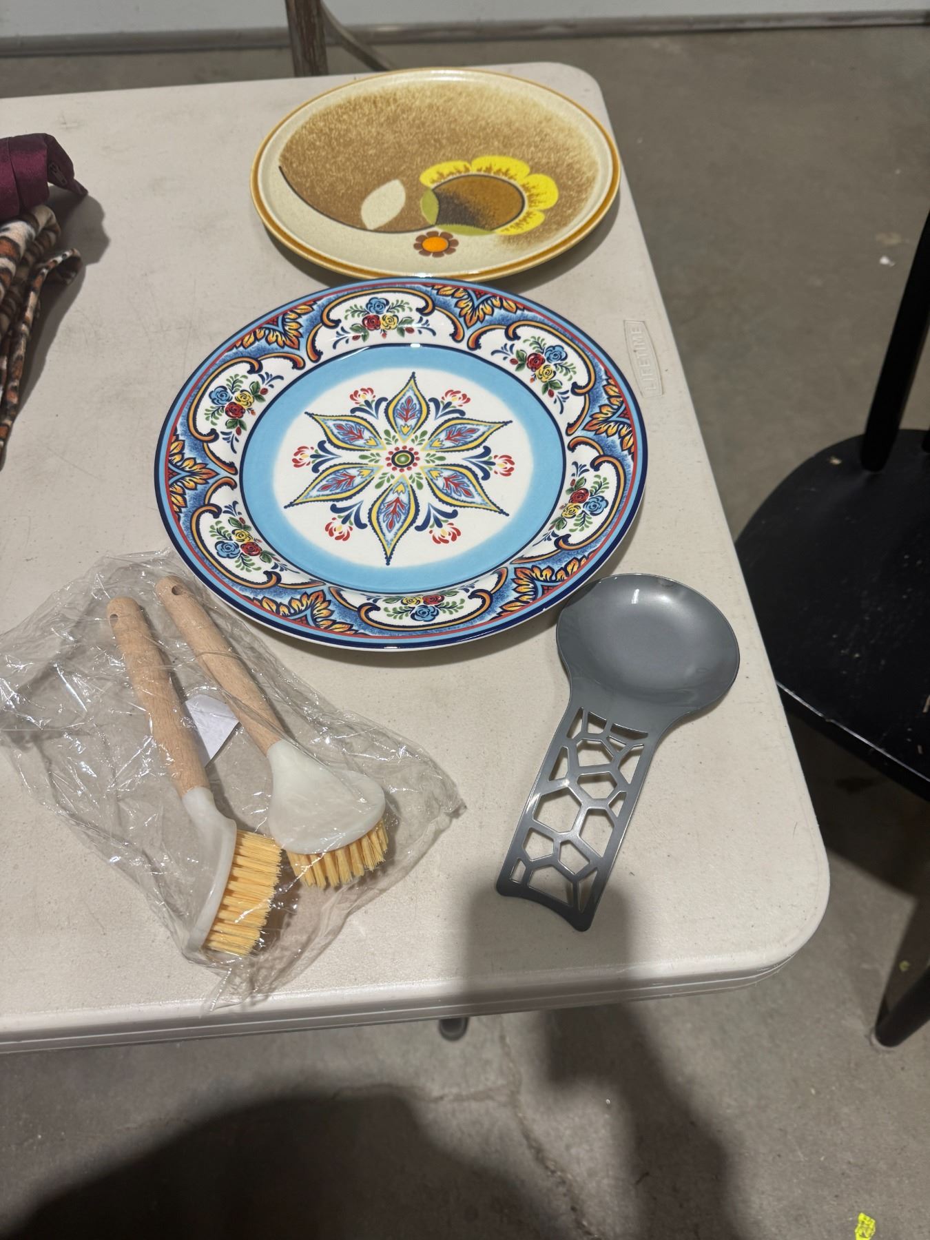 Spoon rest two plates and dish brushes