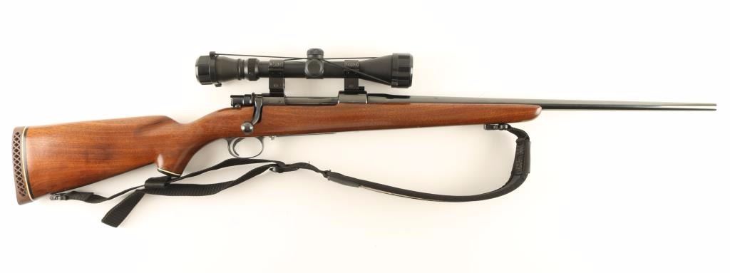 Well built bolt action sporting rifle chambered in .30-06 Springfield. Features a blued finish, 22" J.C. Higgins tapered barrel, Belgium made FN receiver, Ijk Optics Co. 3-9x scope, Allen padded sling, serrated trigger, internal box magazine with push button floorplate, sliding safety lever to the right side of the action, and smooth one piece walnut shoulder stock with recoil pad. Rifle retains approximately 94% of it's blued finish with a few shallow scratches on the top of the barrel. Action is smooth, bore is excellent and wood stock is fine. Condition is near excellent. ***Modern Firearm***