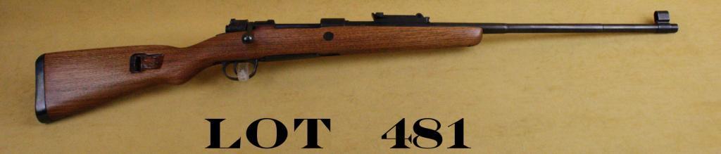 Sporterized Mauser BA rifle, 8mm, 24” round barrel, reblued finish, import-marked, wood stock, #M15519. This gun is in overall good condition as sporterized and re-furbished showing the majority of finish with “M-48”marked on top of receiver, overall good bore, action and markings; wood stock is very good with all matching visible serial numbers. Est.: $150-$300.