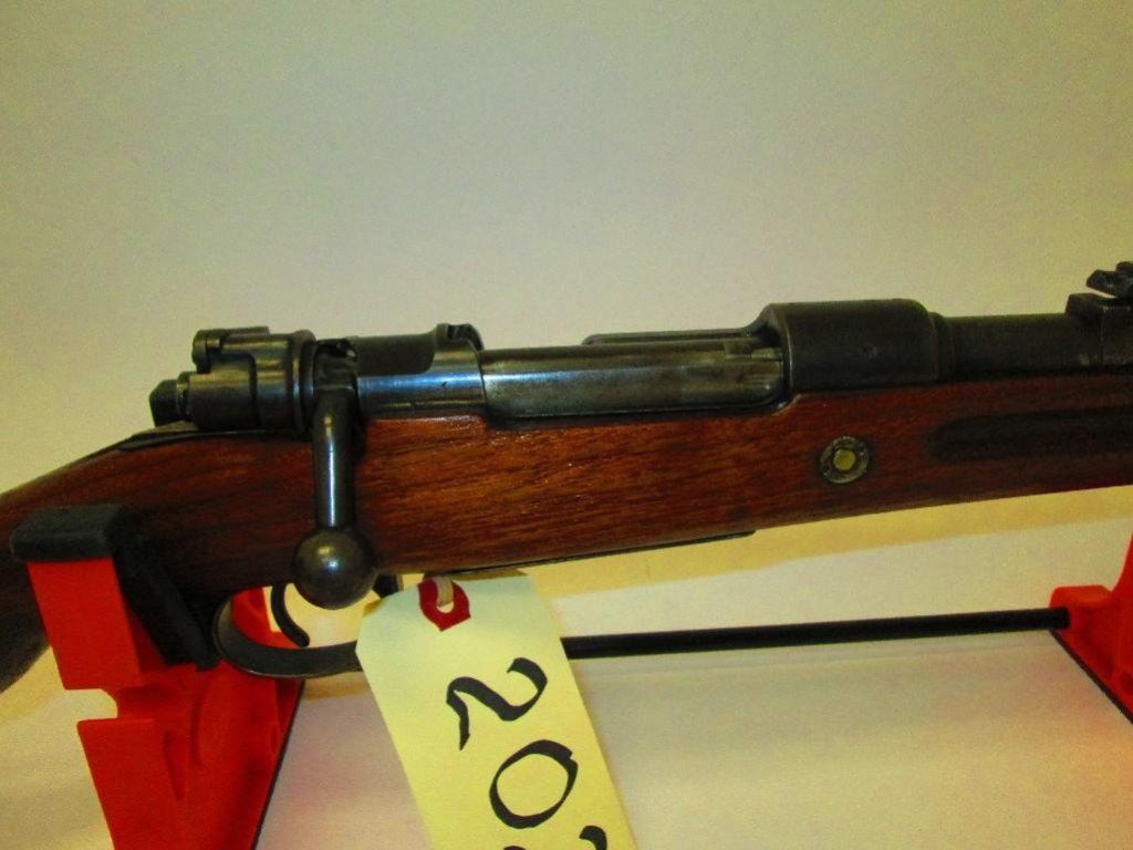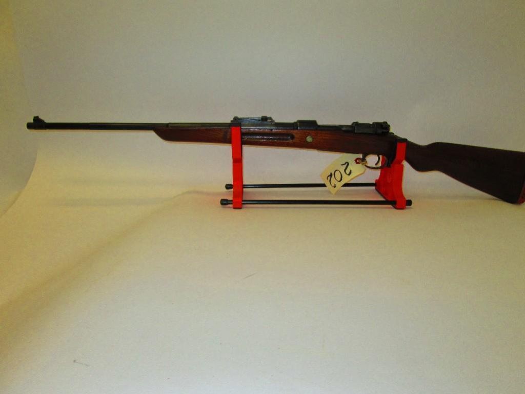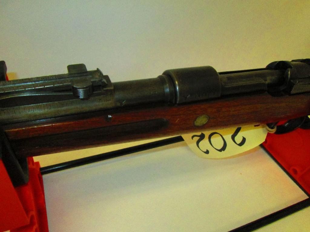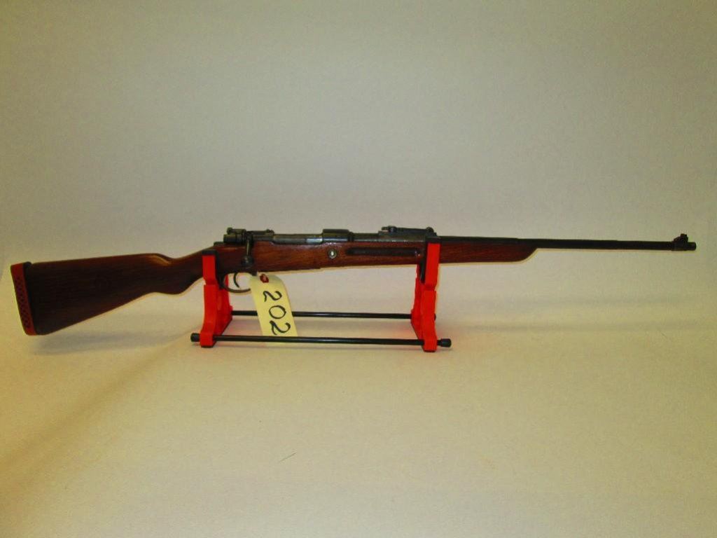 8mm. Original stock cut down. Ser. #s on the barrel and receiver do not match. Otherwise nice WWII piece.Check the eagle stamp on the receiver.