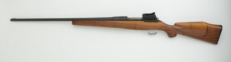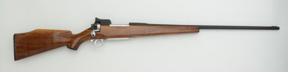 Sporterized U.S. Model 1917 bolt action rifle by Remington, .30-06 cal., 26” barrel, parkerized re-finish, custom wood stock, #8408 in overall good condition with a good bore and action, nickeled bolt and triggerguard; good wood stock. Est.: $250-$500.
