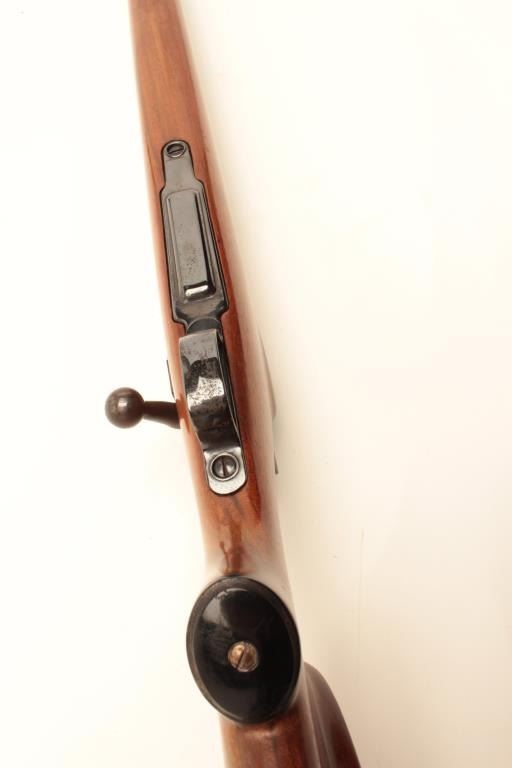 Sporterized U.S. Remington Model 1903 bolt action rifle, 23” barrel, re-blued finish, custom wood stock, Lyman adjustable receiver peep sight, S/N 3193156, in overall good condition with a good bore, crisp action andgood wood stock with old White Line black hard rubber butt pad. (C&R). Est.: $150-$300.
