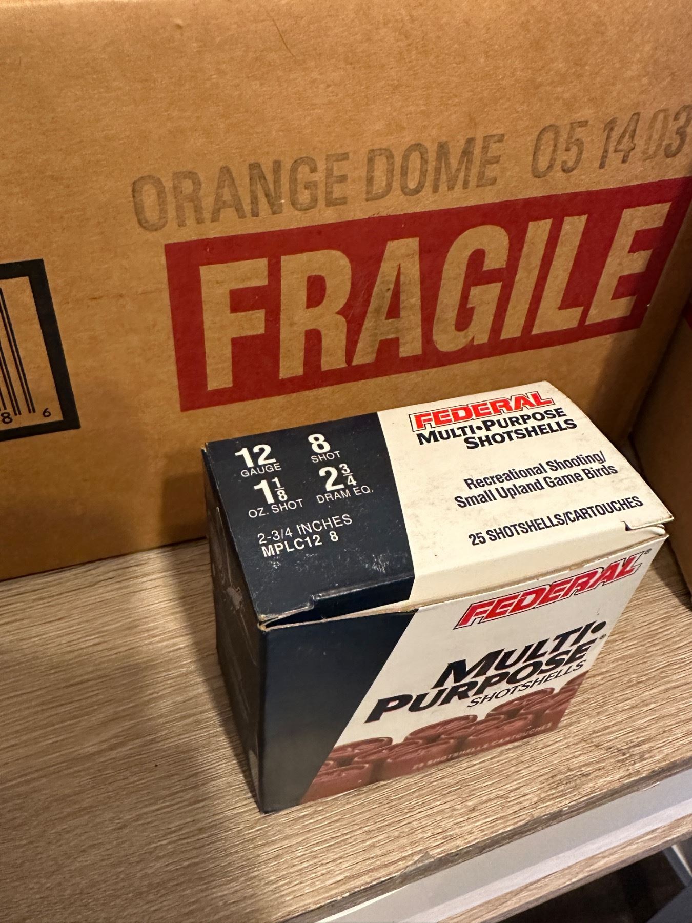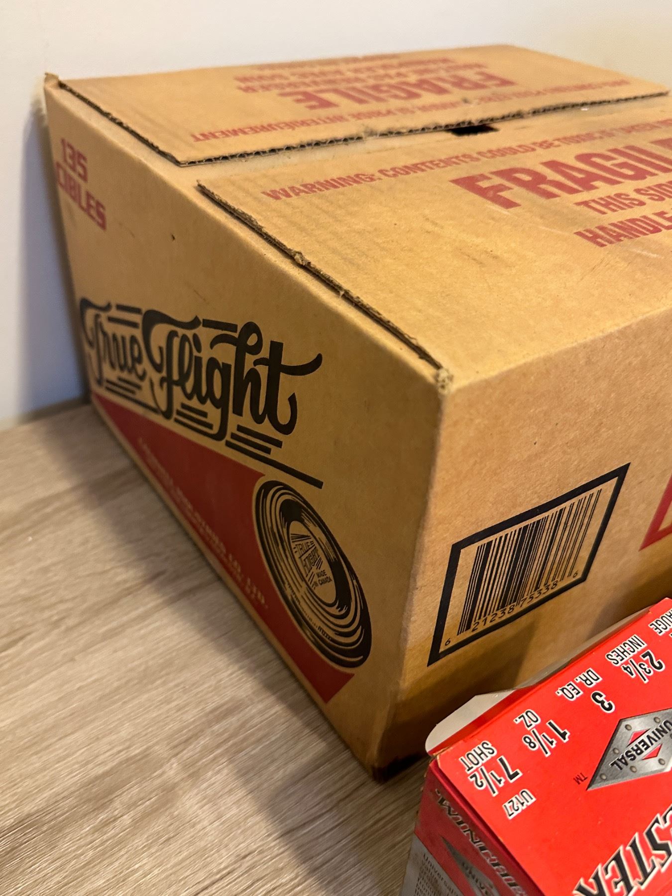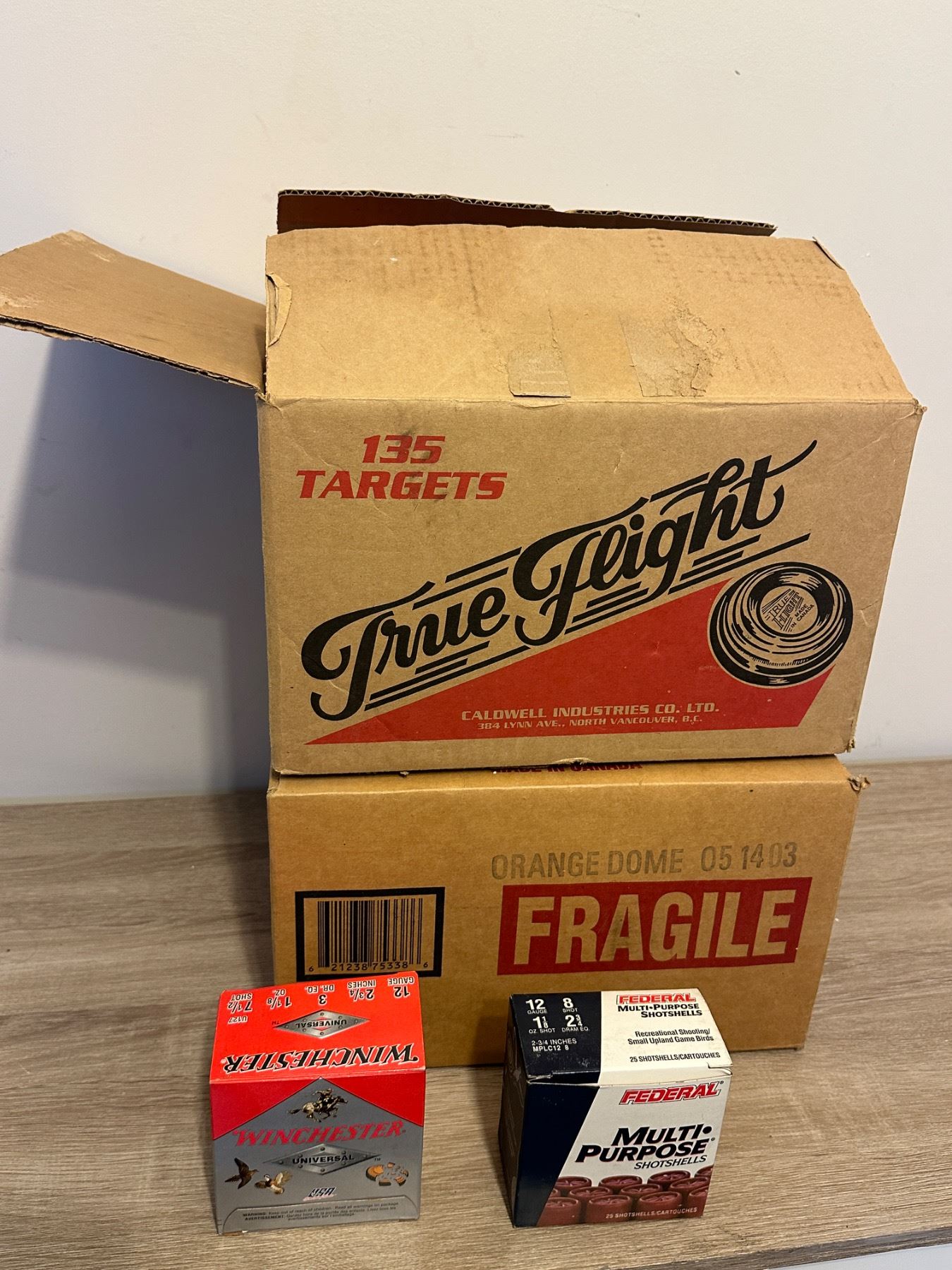 Includes 1 unopened box of True Flight Orange Dome 135 targets, an opened box of targets and 2 boxes of 12 gauge shells. Must show valid PAL.