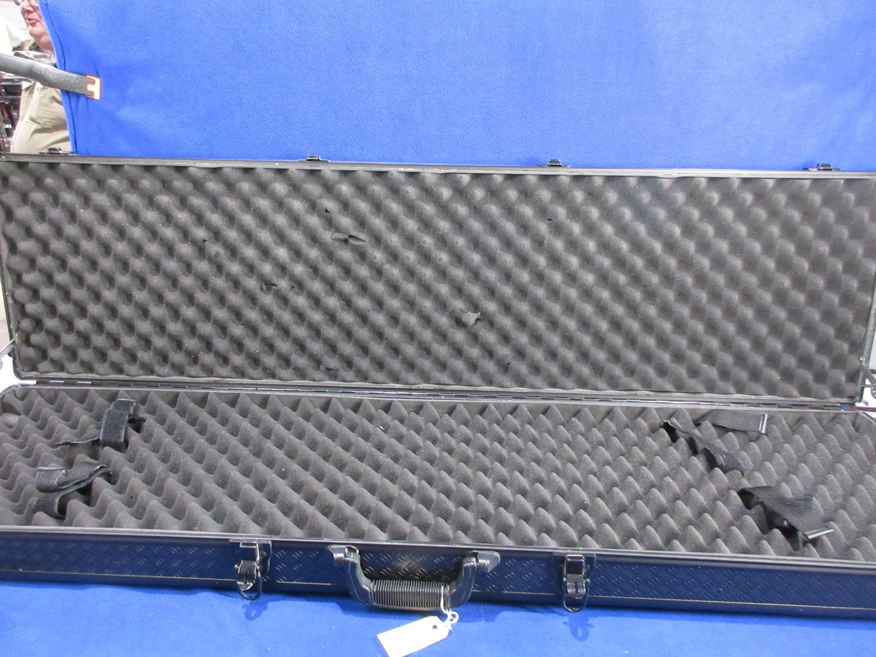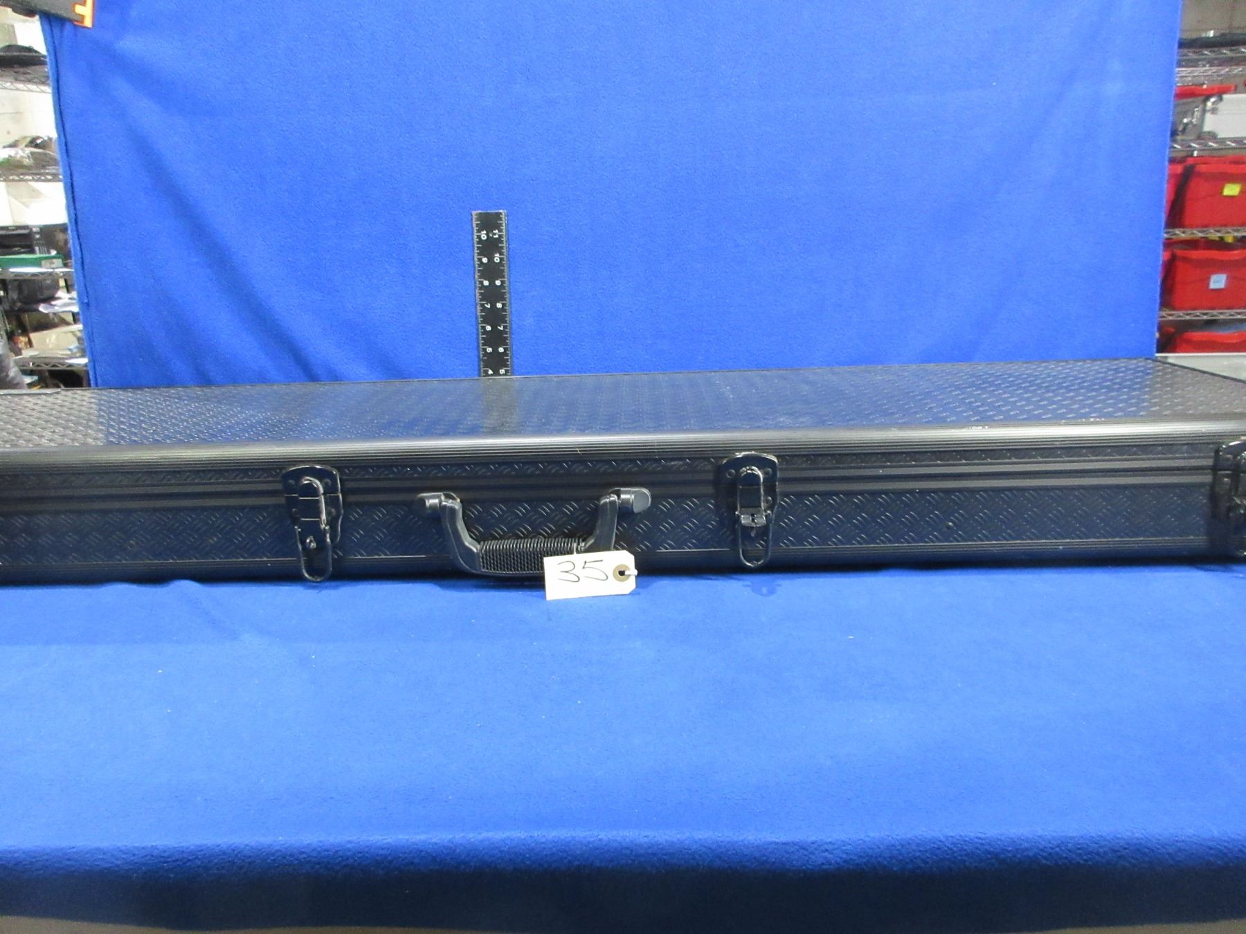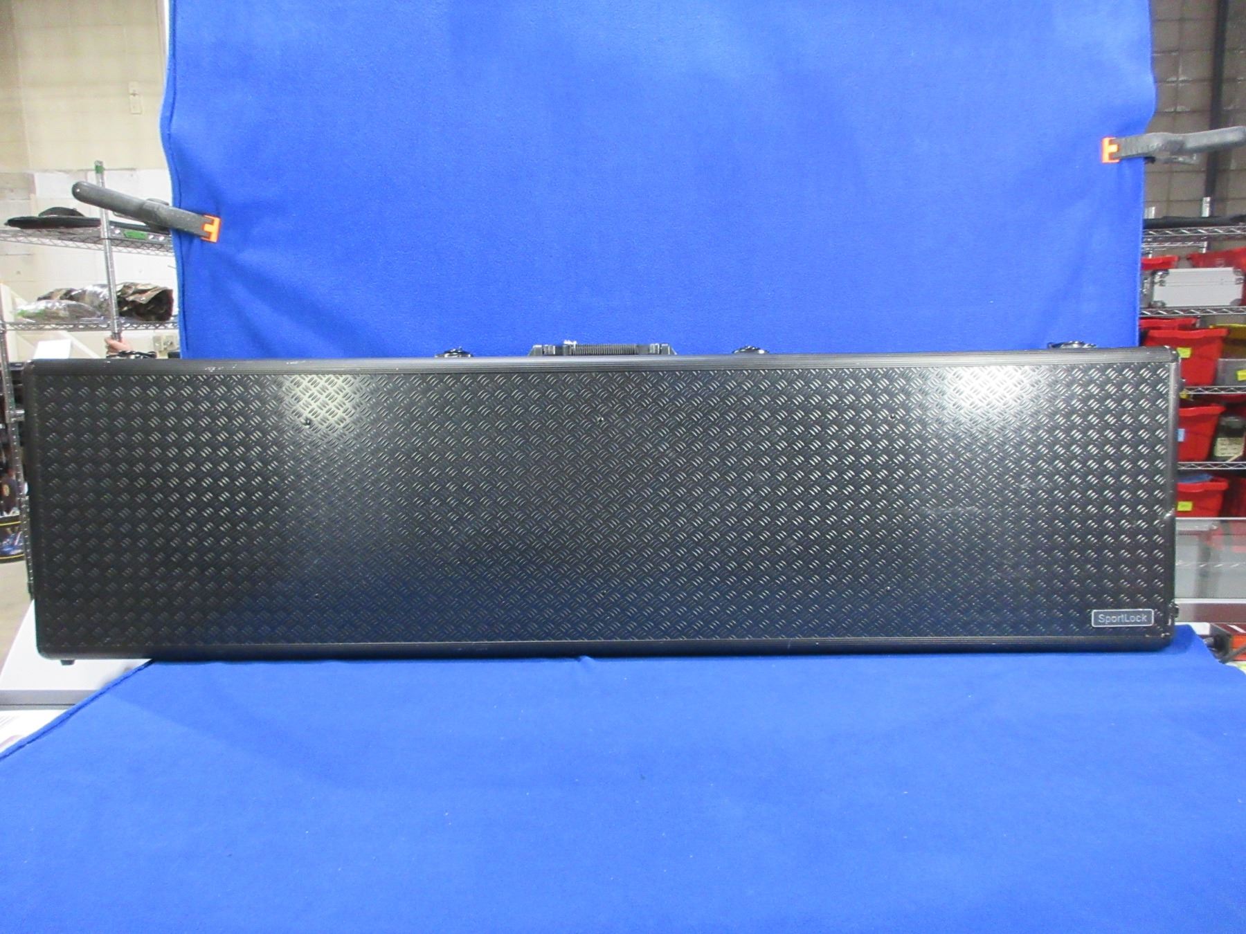 Sportlock Aluminum Hard Gun Case with Wheels - 52" x 14" x 4 1/2" - No Key - Has damage on the back corner and chipped aluminum on the bottom
