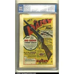 Sports Action #2 Double Cover (Atlas, 1950) CGC NM 9.4 Cream to off-white pages. How about this: a Bob Powell painted cover, a book about real-life sports figures clocking in at a whopping 52 pages thick, in Near Mint condition, and with a double cover to boot? What a package! You think the outer cover is cool? It's graded a nice 8.5, but the inner cover is practically perfect at 9.4! The "True Life Story of George Gipp" is included. Overstreet 2002 NM 9.4 value = $425. Important notice: We expect to be auctioning lots at the rate of 200-250 per hour. Sometimes eBay Premier live bid software cannot keep up with that pace, so we strongly recommend that you place a realistic proxy bid now as insurance to avoid disappointment. Also please note that all Heritage/CAA lots purchased through eBay Premier carry a 20% Buyer's Premium.