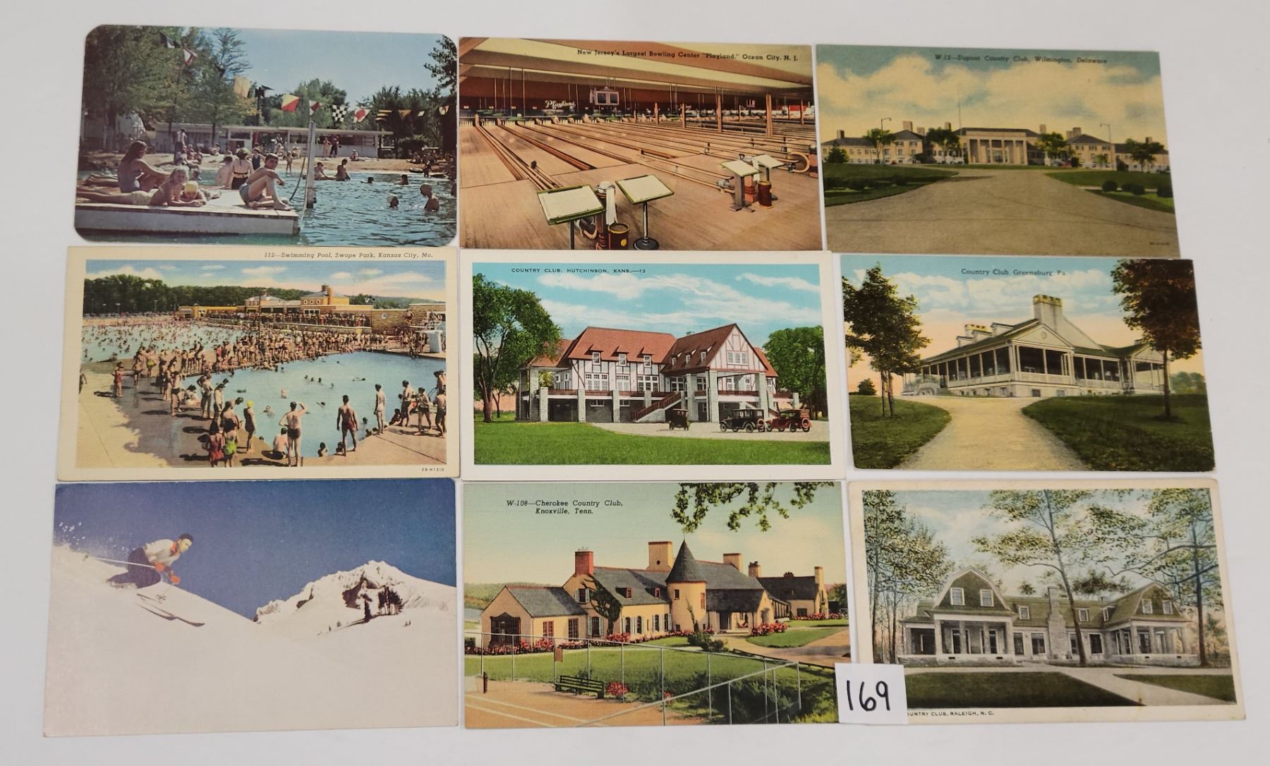 Approx. 150 sports postcards. Bowling, golf, tennis, skating, swimming and more. Early to standard size chrome.