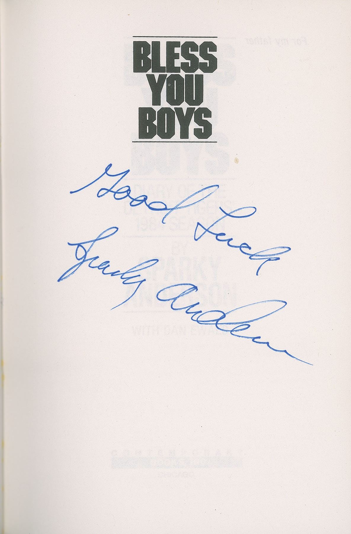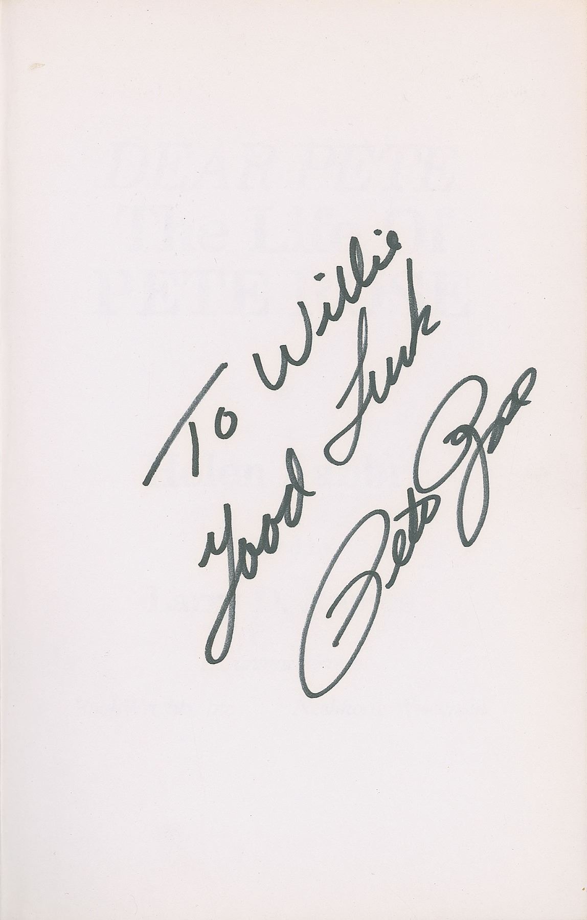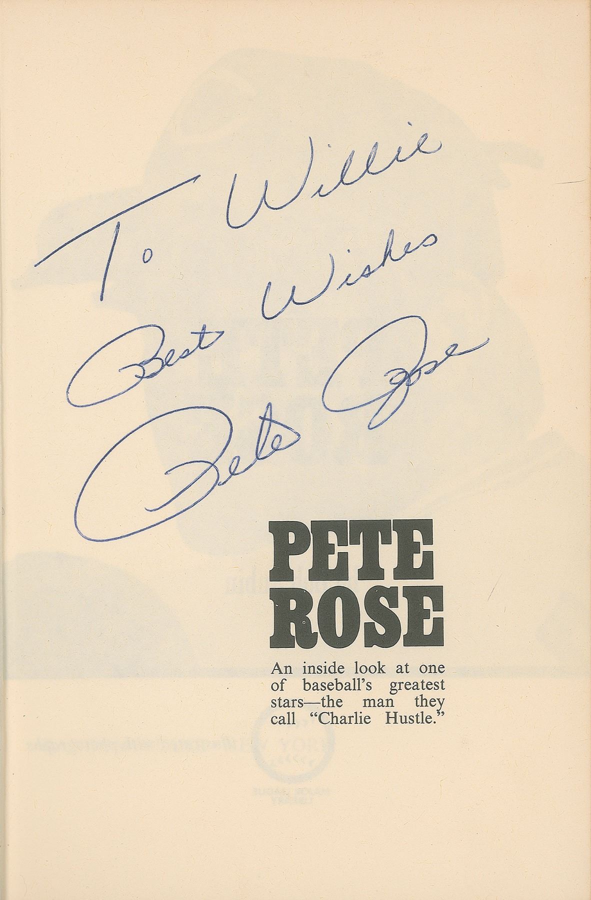 Group lot of 17 books signed by one or more notable professional athletes or coaches, the majority hardcover with dust jackets, each book signed on an opening page in ink or felt tip, with five inscribed. Signers include: Sparky Anderson (2: Bless You Boys: Diary of the Detroit Tigers’ 1984 Season; and The Main Spark: Sparky Anderson & the Cincinnati Reds), Johnny Bench (2: From Behind the Plate; and Johnny Bench: The Little General), Paul Brown (PB: The Paul Brown Story), Jack Dempsey (Dempsey), Archie Griffin (Archie: The Archie Griffin Story), Lou Henson (Lou: Winning at Illinois), Bob Knight (Knight: My Story), Eddie Rickenbacker (Rickenbacker: An Autobiography), and Pete Rose (5: Pete Rose; Pete Rose: My Life in Baseball; Pete Rose: My Story; The Pete Rose Story; and Dear Pete: The Life of Pete Rose). Also included is a copy of Charlie Hustle, which is signed by Pete Rose, Johnny Bench, Ken Griffey, Sr., Doug Flynn, Alex Grammas, George Scherger, Gary Nolan, Ed Armbrister, César Gerónimo, Will McEnaney, Bill Plummer, Clay Carroll, and two other members of the Cincinnati Reds. In overall very good to fine condition, with some wear and tears to dust jackets.