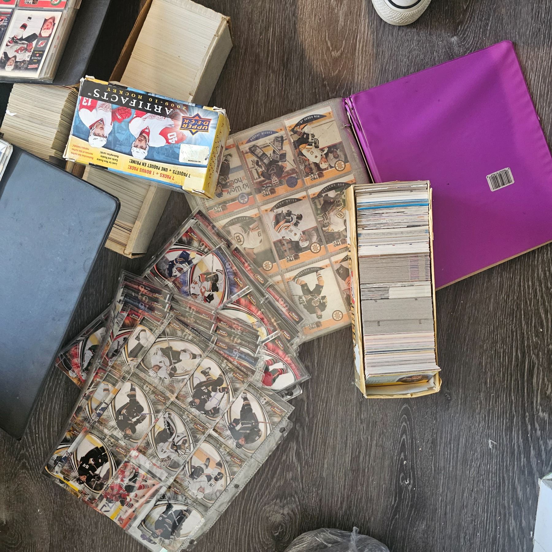 This is a lot of all years and kinds of hockey, baseball, football, and movie/tv show cards, the lot has 100s of cards