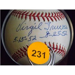 Virgil Trucks Autographed Baseball. Rawlings Official ALB and card. Appraised or estimated retail value $500. COA by Ballpark Signatures. All Sale