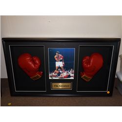 Muhammad Ali Autographed Boxing Gloves. Boxed pair of Autographed Everlast Gloves. Signature on chest of picture. Appraised or estimated retail valu