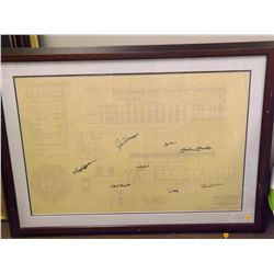 Yankees Stadium Blueprint Autographs. Framed replica Yankee Stadium Blueprints. Autographed by Reggie Jackson, Phil Rizzuto, Joe Dimaggio, Whitey Fo