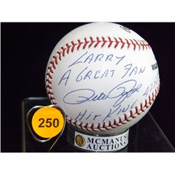 Pete Rose Autographed Baseball. Rawlings Official MLB. Appraised or estimated retail value $300. COA by Christopher Morales. All Sales Final. Ple