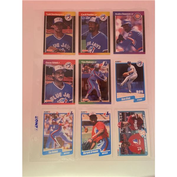 1989 Donruss (Dawson, Fielder, Stieb, Raines & Stottlemyre) & 1990 Fleer (Stieb, Raines, Grissom & DeShields).
