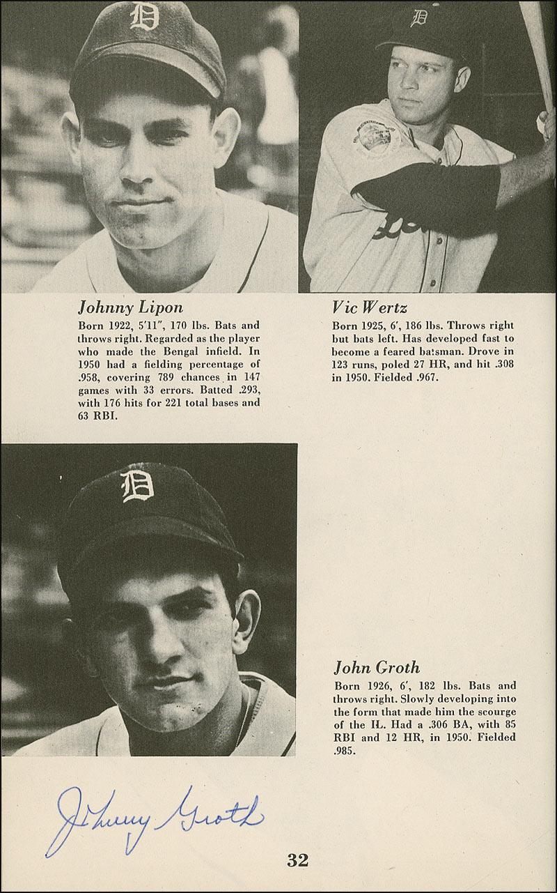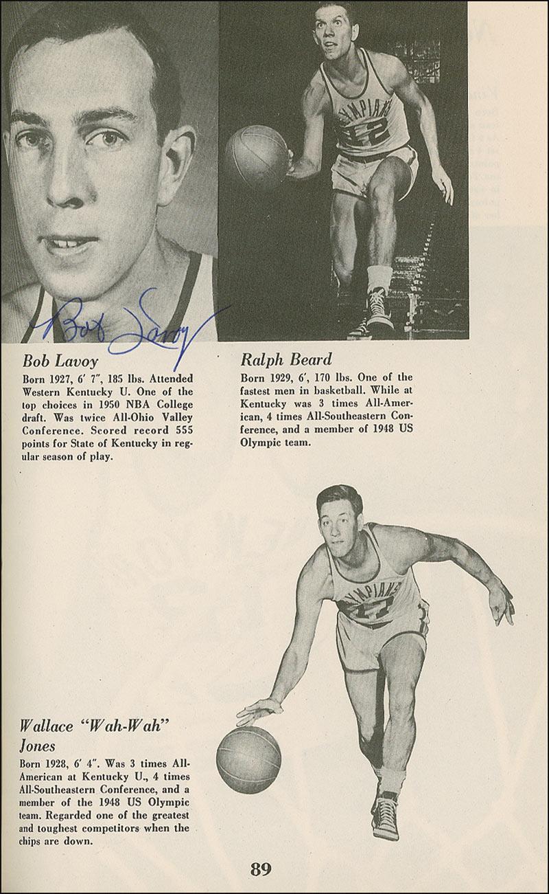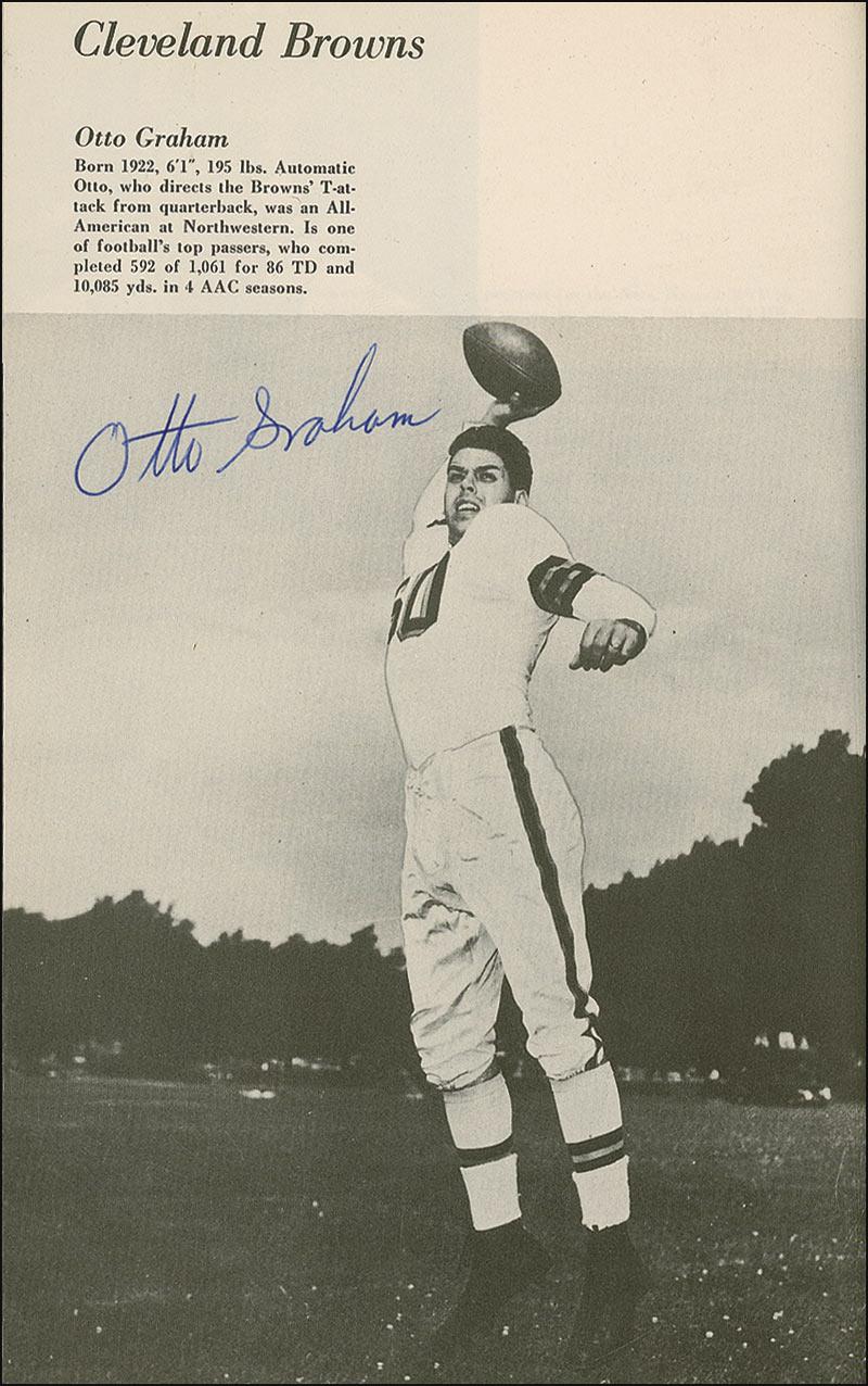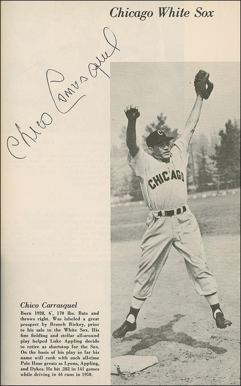 Signed book: Sports Photo Album. First edition, first printing. NY: David McKay Company, 1951. Hardcover with dustjacket, 6.25 x 9.5, 167 pages. Signed inside under their respective pictures by 11 sports greats from baseball, football, and basketball. Signers are: Robin Roberts, Duke Snider, Minnie Minoso, Chico Carrasquel, Hoot Evers, Johnny Groth, Sid Luckman, Otto Graham, Ken Kavanaugh, Larry Coutre, and Bob Lavoy. In fine condition, with some mild toning to pages and pastedowns. Dustjacket has several tears, light soiling, and a small label affixed to back.