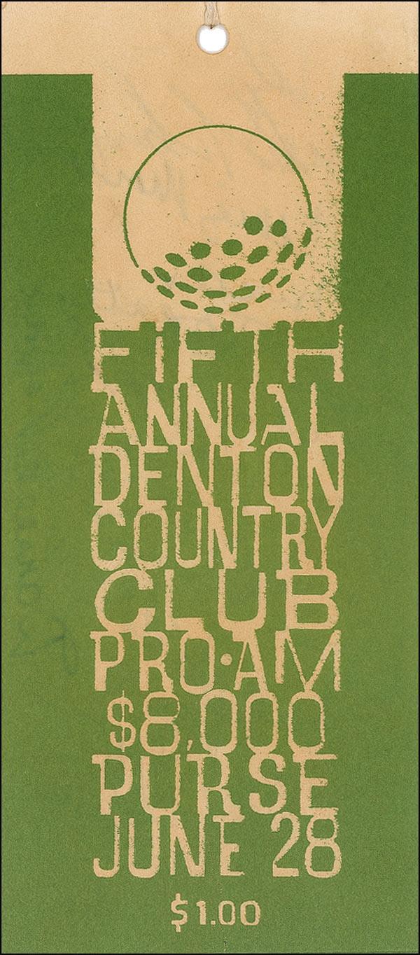 Blue ballpoint signatures of 13 star athletes on the reverse of an off-white 2.5 x 5.75 Denton Country Club Pro-Am golf pass. Signers include Mickey Mantle, Dan Reeves, Tom Landry, Darrell Royal, and Lee Roy Jordan. In fine condition with light toning and Jordan’s signature a bit faded.